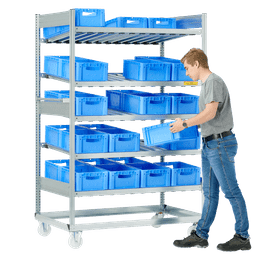 Estanterías dinámicas: flujo por gravedad.