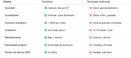 Aun así, en la mayoría de sectores donde la velocidad y el espacio son claves, AutoStore está demostrando ser superior.