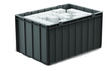 Cubetas: para almacenar stock. Hay de 3 tamaños distintos, que difieren en altura: 220 mm, 330 mm y 425 mm. Su elección para un proyecto está ligado estrictamente con las medidas del stock que almacenaremos en él.